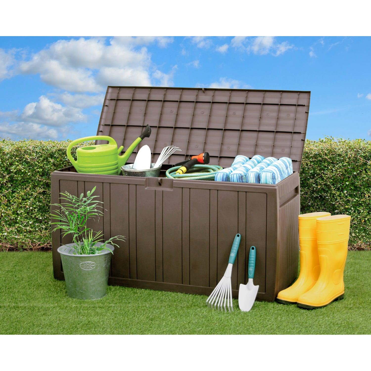 Organiza y almacena con estilo utilizando el Baúl Bodega Caja Almacenaje de 270L de Northwest en color café. Con una capacidad amplia de 270 litros, este baúl es ideal para guardar herramientas, juguetes, equipos de jardinería y más. Su diseño robusto y resistente garantiza durabilidad, mientras que su color café se integra fácilmente en cualquier espacio, ya sea en interiores o exteriores. Mantén tus pertenencias seguras y ordenadas con este práctico y elegante baúl.