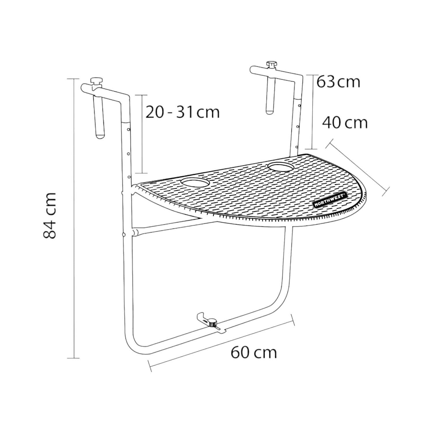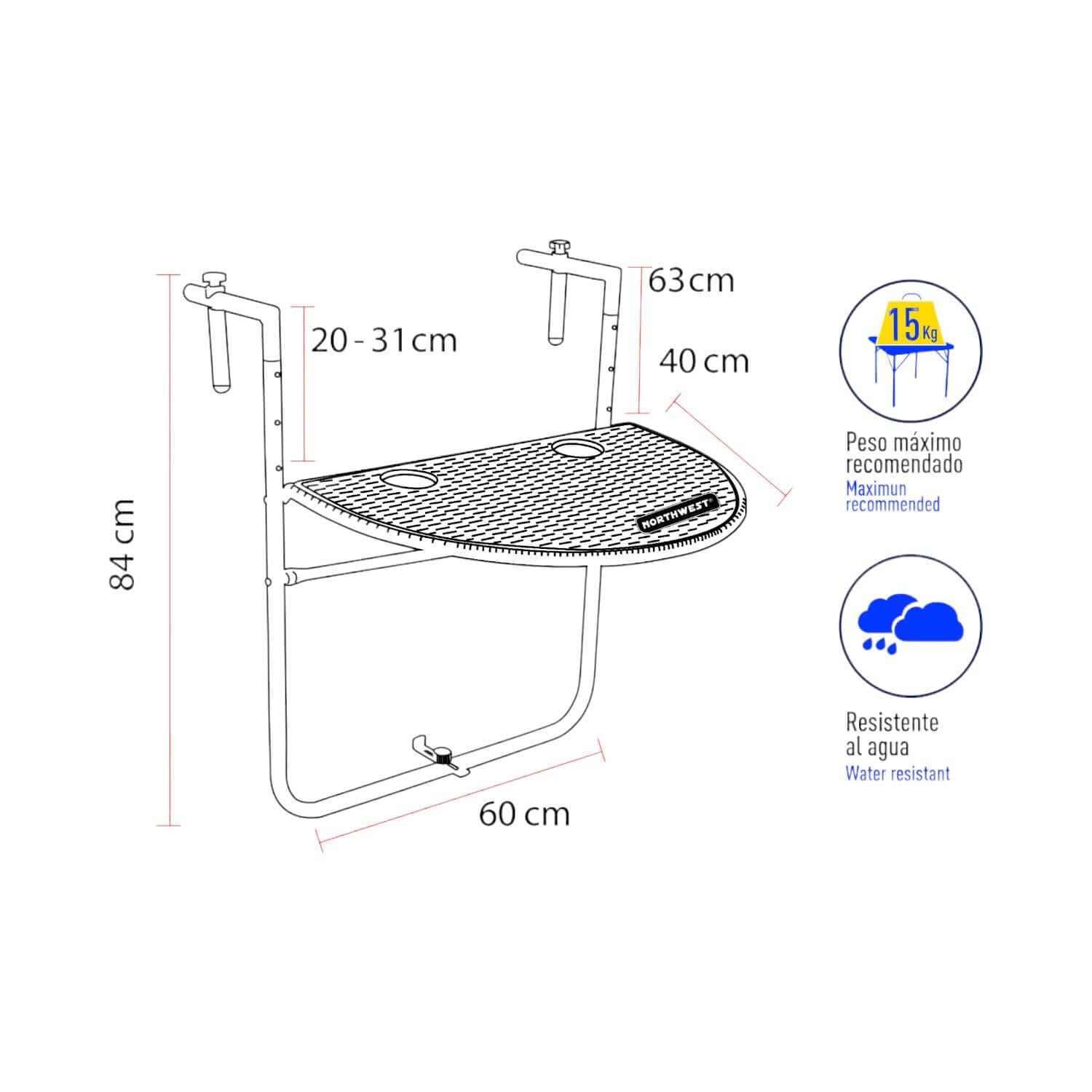 Mesa Balcón Ajustable Porta Vasos 60 CM Northwest