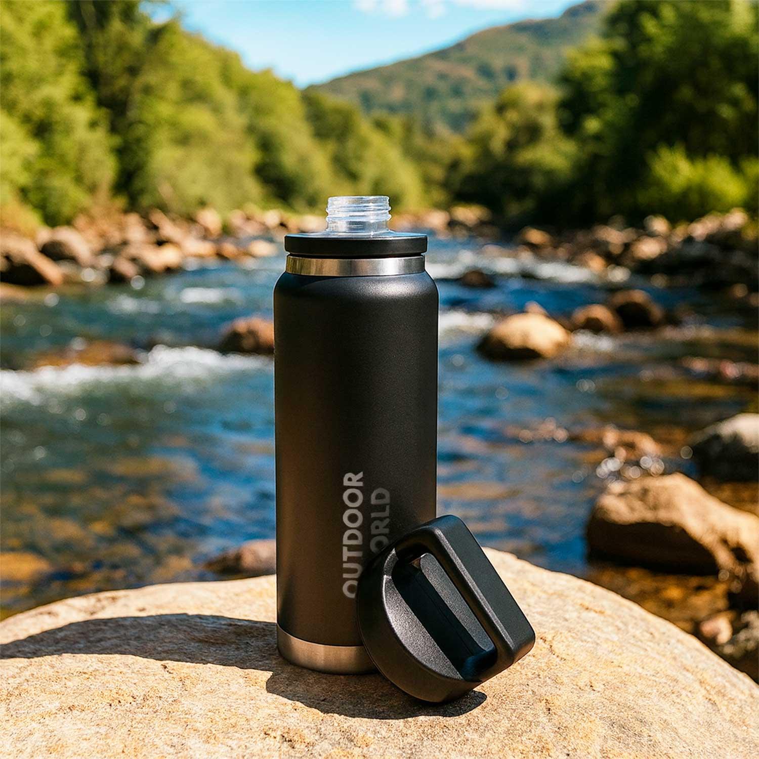 Botella Metálica Térmica Doble Boca Ajustable Angosta y Ancha 800ml Negro