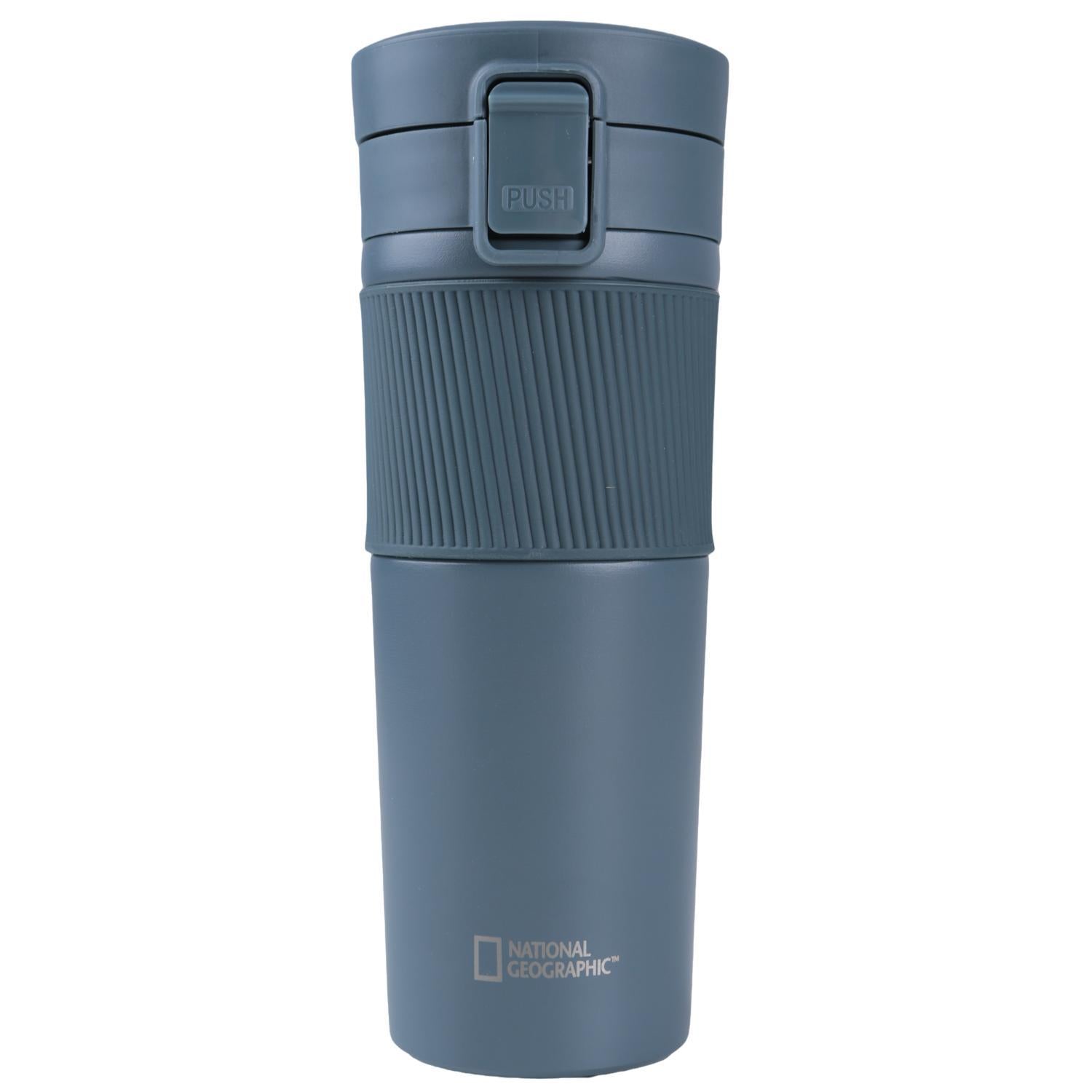 Mug Acero Inoxidable Tapa Con Pulsador y Antideslizante 480ml Gris