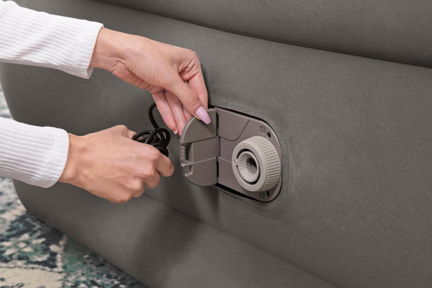 - La bomba CA integrada de 110-120 V infla el colchón en 5 minutos