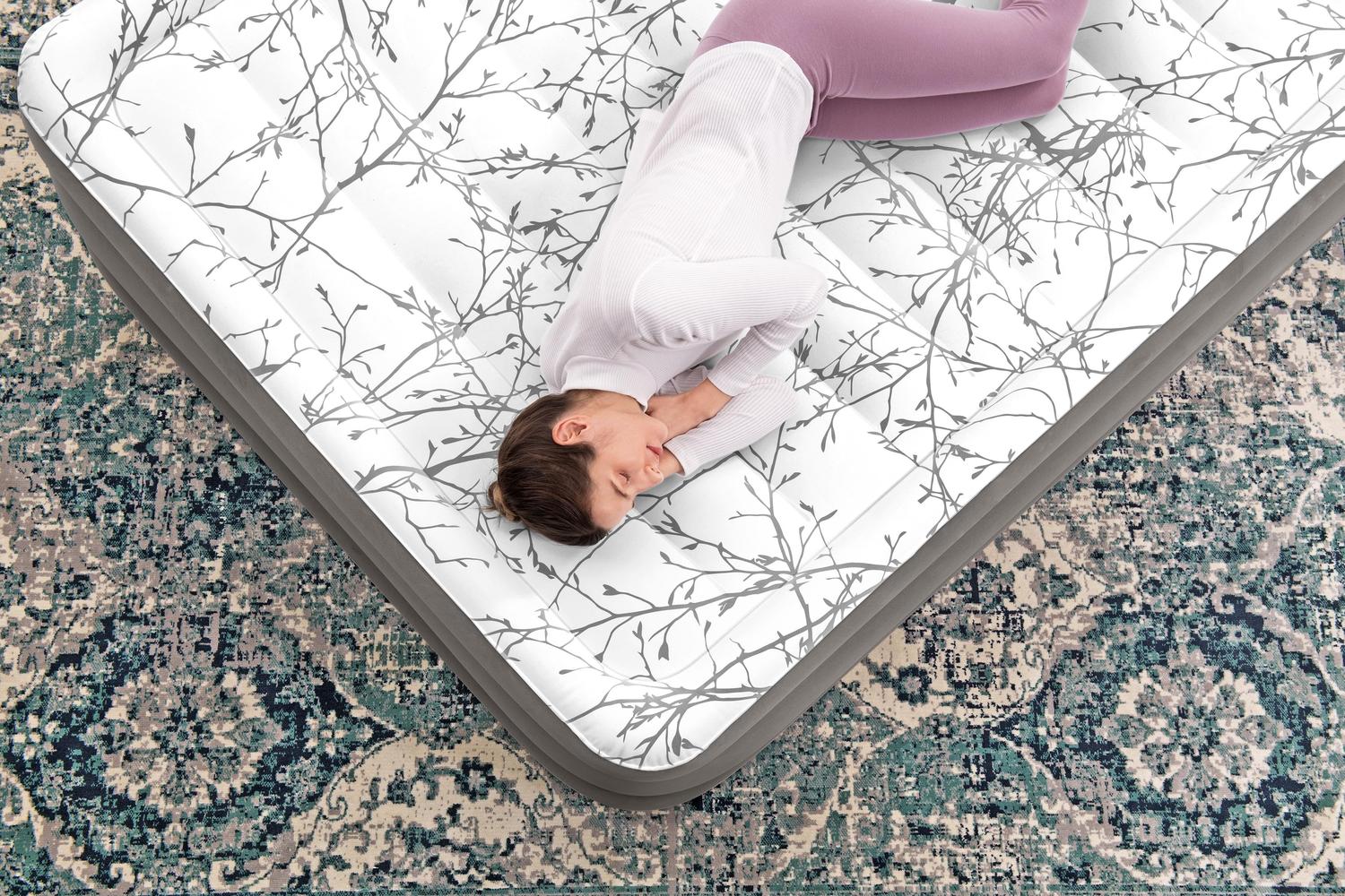 Este colchón hinchable viene completo con la parte superior Fashion Flock. El blando material está cubierto de un estampado elegante y moderno que elevará el aspecto lujoso de este colchón. Se adapta perfectamente a cualquier habitación de invitados, salón o cualquier lugar en el que necesites un espacio extra para dormir.