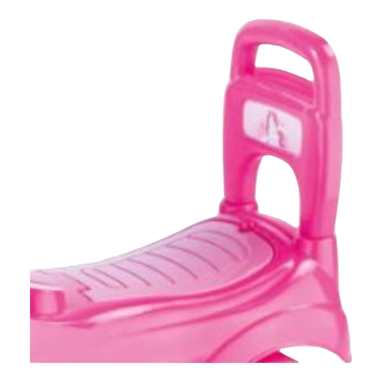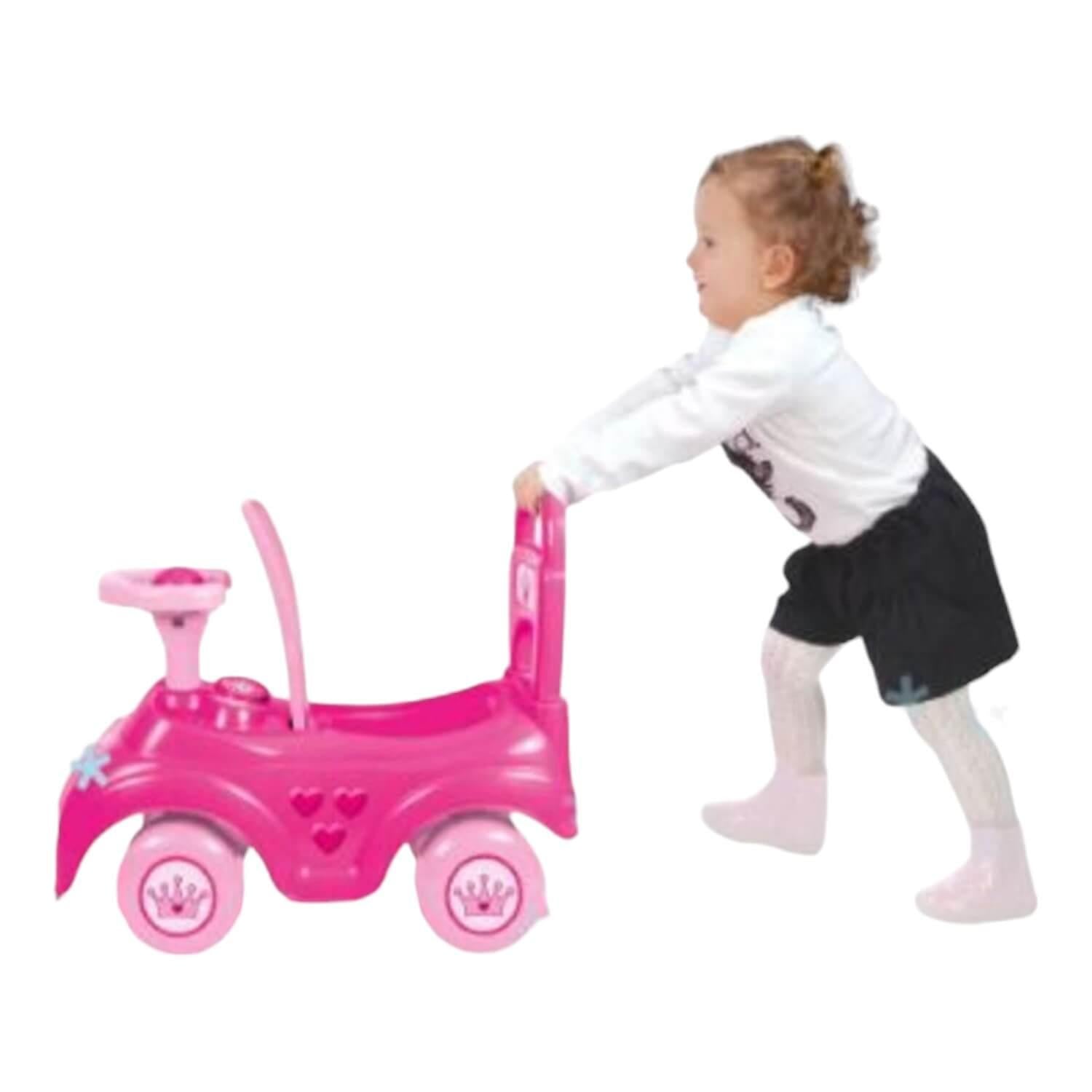 Es adecuado para niños de 12 meses en adelante. Es de color rosa.Tiene cuerno y equipaje. Está en la caja. Favorece el desarrollo corporal de los niños.