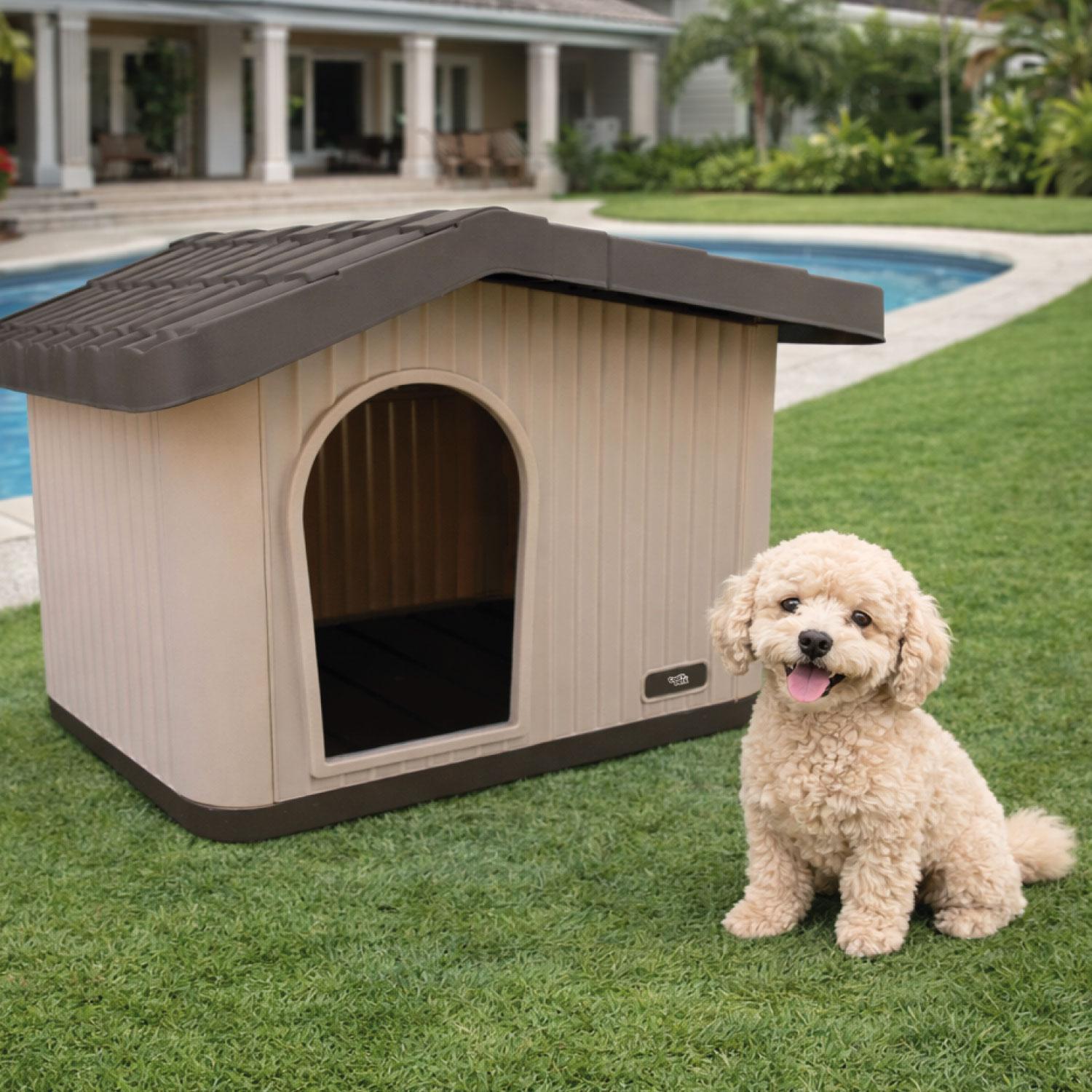 - Casa para perro de plástico estilo cabaña