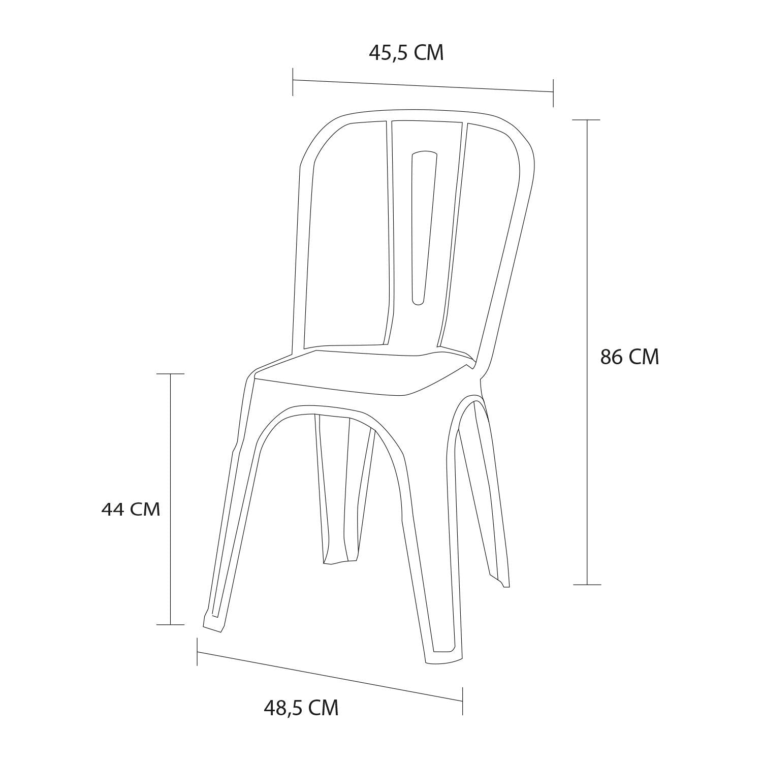 Fabricada en PP (polipropileno) de alta resistencia, soporta hasta 150 kg, ofreciendo firmeza y durabilidad para el uso diario. Es apilable, ideal para optimizar espacios, y cuenta con protección UV, manteniendo su color y acabado por más tiempo.