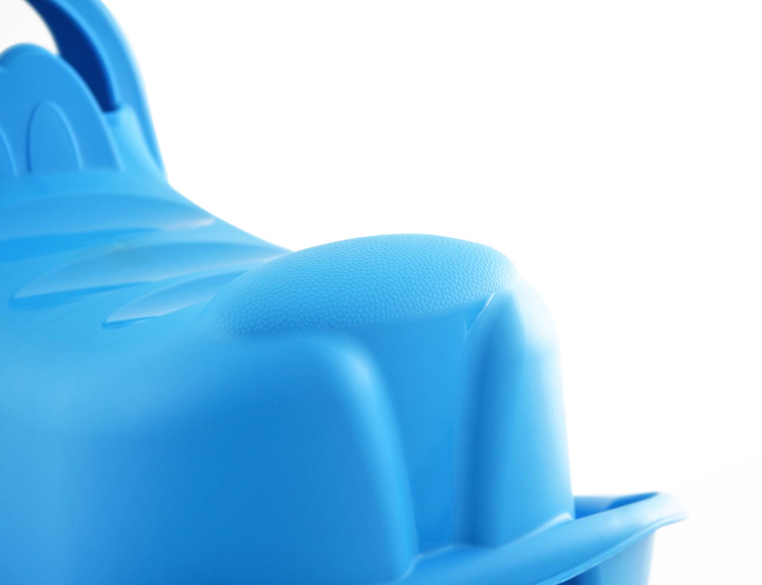 Está fabricado con plástico de alta resistencia, un material duradero y ligero que soporta el uso constante sin deteriorarse. Su superficie es suave al tacto y de bordes redondeados, garantizando la seguridad de los más pequeños. Además, cuenta con asientos ergonómicos y cómodas asas de agarre, que entregan estabilidad durante el movimiento del sube y baja.
