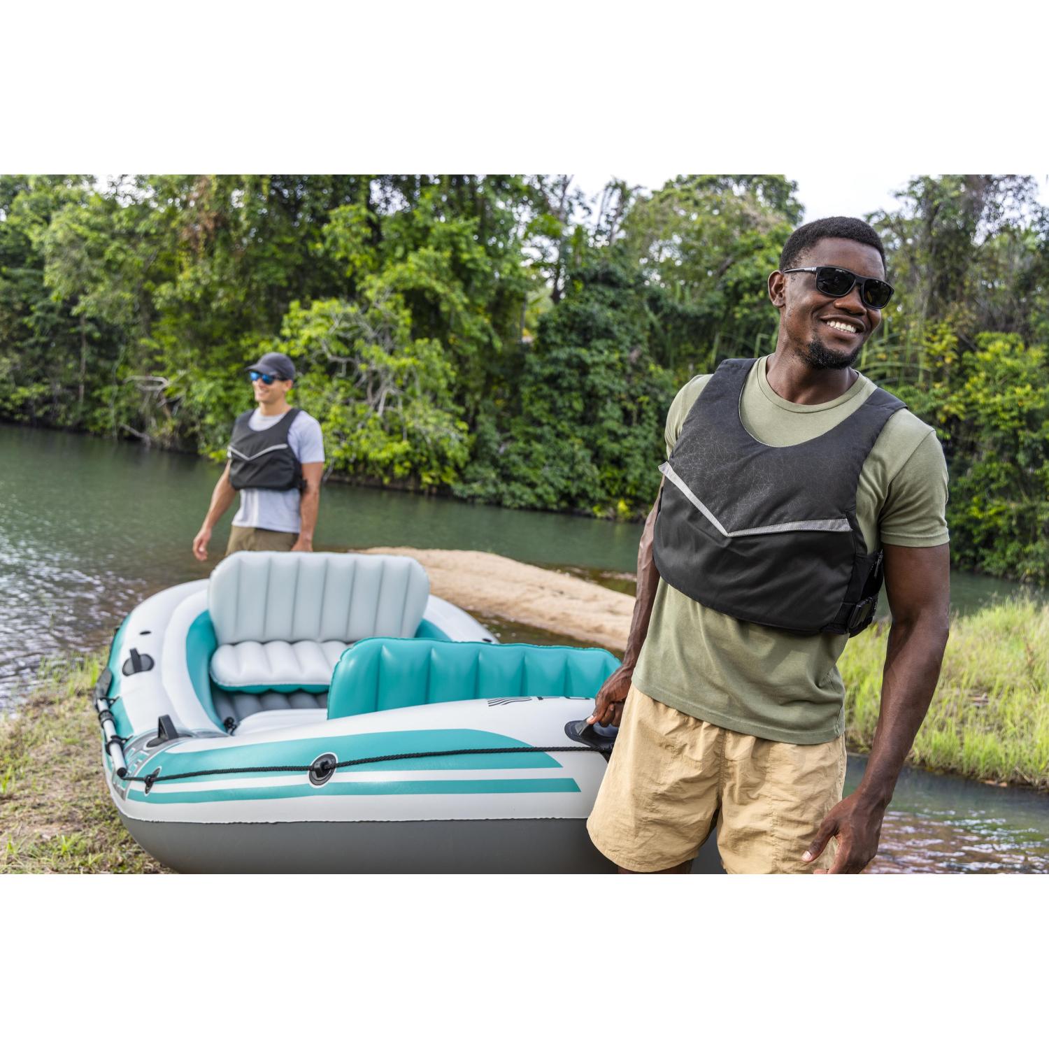 Embárcate en la aventura con la balsa inflable Hydro-Force™ Adventure Elite™ X5, diseñada para quienes buscan emoción y comodidad en el agua. Fabricada con material Tritech® de 3 capas y revestimiento Inflata-Shield Pro™, ofrece resistencia superior a perforaciones y gran estabilidad. Su tratamiento Ultra-Fresh® antimicrobiano previene malos olores, moho y bacterias, manteniendo tu embarcación fresca y lista para cada viaje. Con capacidad para cinco personas, esta balsa cuenta con asientos inflables con respaldo, cojín extraíble y suelo inflable para mayor confort. Incluye remos de aluminio, toletes omnidireccionales y la opción de agregar un motor de hasta 1,5 hp (no incluido). Fácil de inflar y transportar, se pliega cómodamente en su bolsa de almacenamiento. La Adventure Elite™ X5 combina durabilidad, rendimiento y confort, ideal para explorar ríos, lagos o disfrutar un día de rafting con amigos.