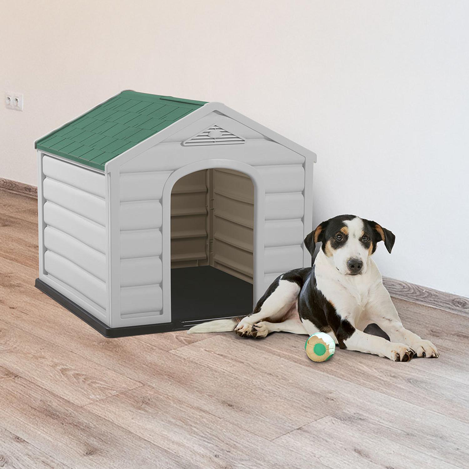 Casa Para Perro Pequeña Gris Hielo - Techo Verde 68x61x58,5cm