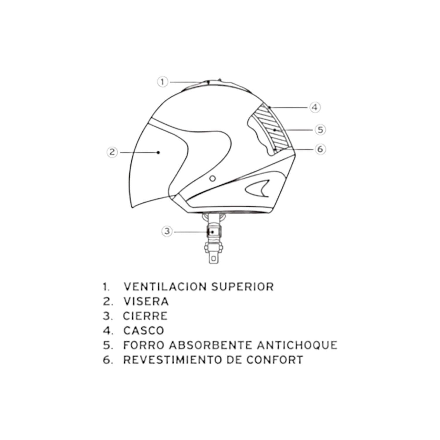 ¡Ideal para proteger tu cabeza de algún accidente a la hora de hacer uso del casco, contiene varios puntos de ventilación, con una visera transparente para mayor visibilidad y cuidado del rostro, interior acolchado para mayor protección y con un cierre de seguridad para ajustarse a la medida de cada persona. ¡