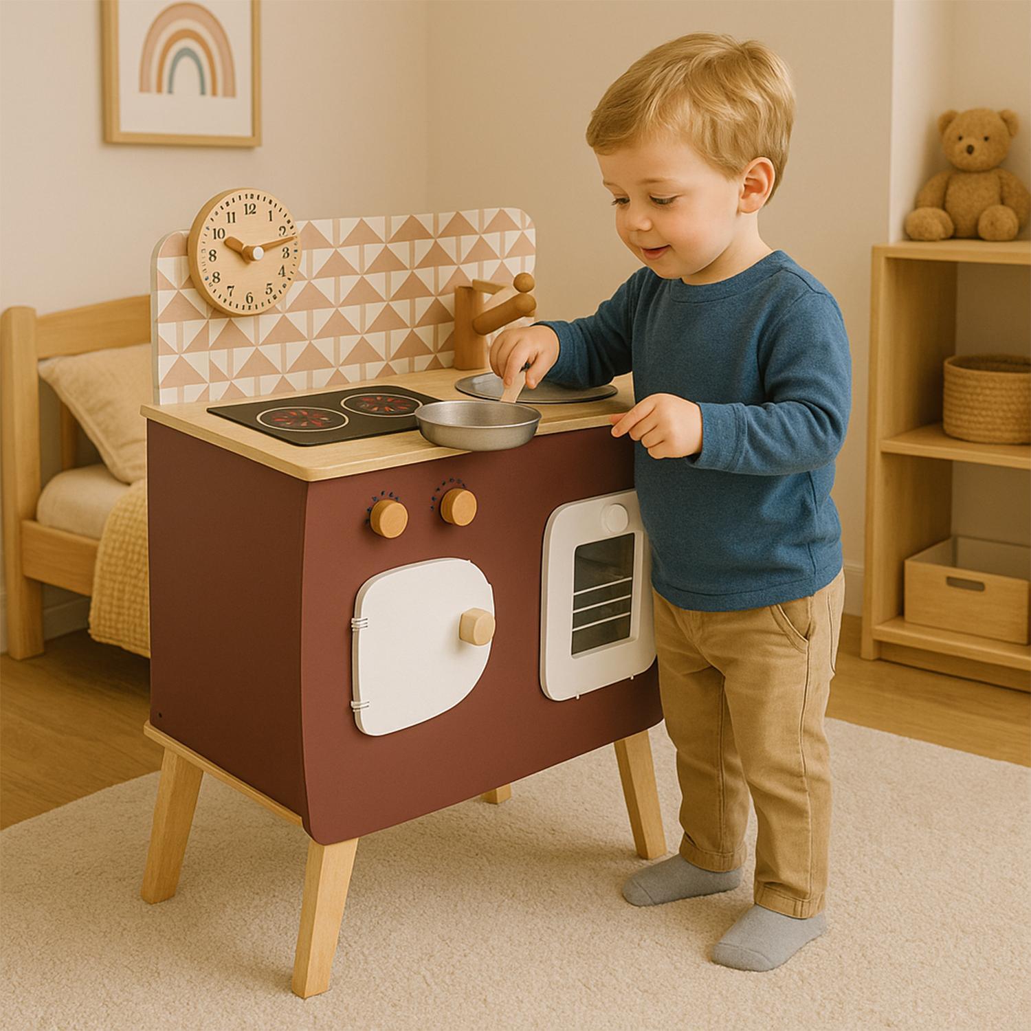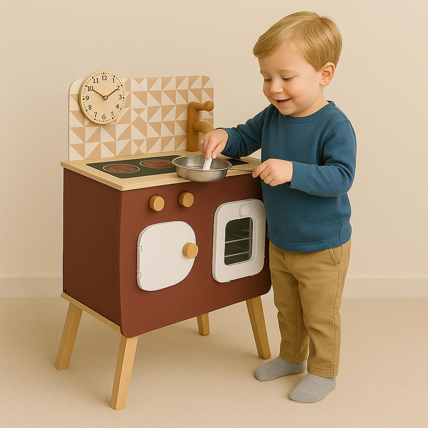 Sumérgete en el encanto parisino con la cocina de madera París, incluye una espátula y una olla con mango, los accesorios esenciales para que los niños den rienda suelta a su imaginación, creando las más deliciosas "recetas". Ideal para fomentar habilidades motoras, el aprendizaje sensorial y el amor por explorar el mundo de los adultos a través del juego, la cocina París no es solo un juguete, es un regalo que deja huella en la infancia. Déjate llevar por el encanto de la cocina de madera París y regala a tus pequeños un pedacito de magia y creatividad para iluminar su día a día. ¡La diversión comienza aquí!