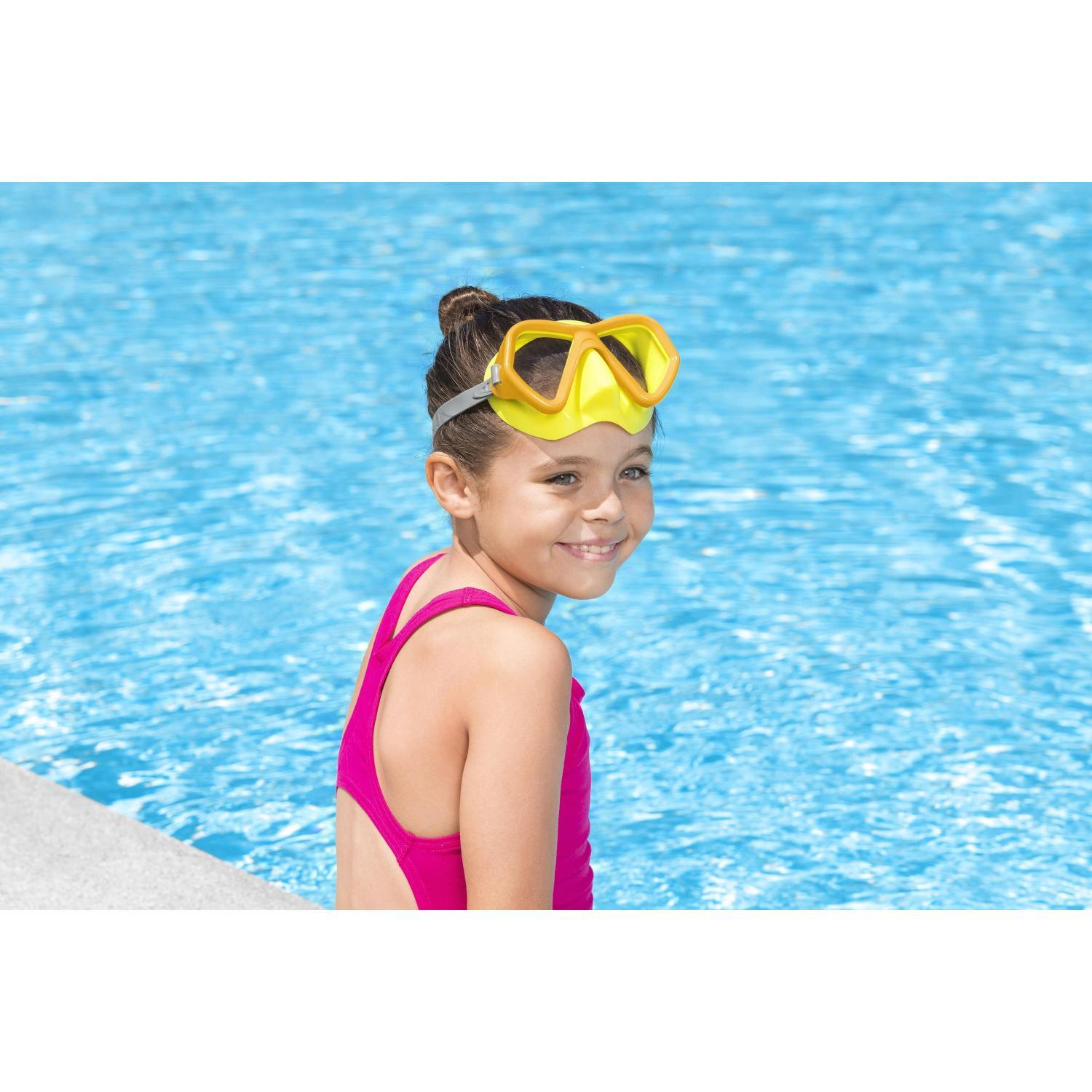 Perfecto para niños mayores de 3 años.Lentes duales de policarbonato resistentes a impactos con revestimiento protector UV Falda con borde cómodo y resistente a fugas con correa para la cabeza totalmente ajustable.Fabricado con materiales sin látex.