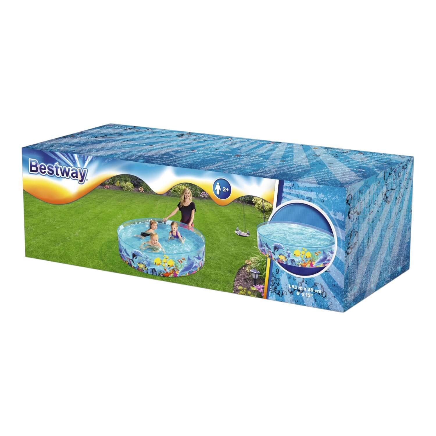 Diseñada para que los niños se muevan, jueguen y salgan de la casa, la piscina Fill-n-Fun tiene una calidad probada y vuelve a centrarse en la diversión. Esta piscina es ideal para que los niños chapoteen y jueguen, y las paredes exteriores están decoradas con una escena submarina fresca y colorida. Las paredes laterales de PVC rígido de alta resistencia se adhieren permanentemente al resistente fondo de vinilo. Chapotear bajo el sol nunca ha sido más divertido que con la piscina Fill-n-Fun de Bestway®.