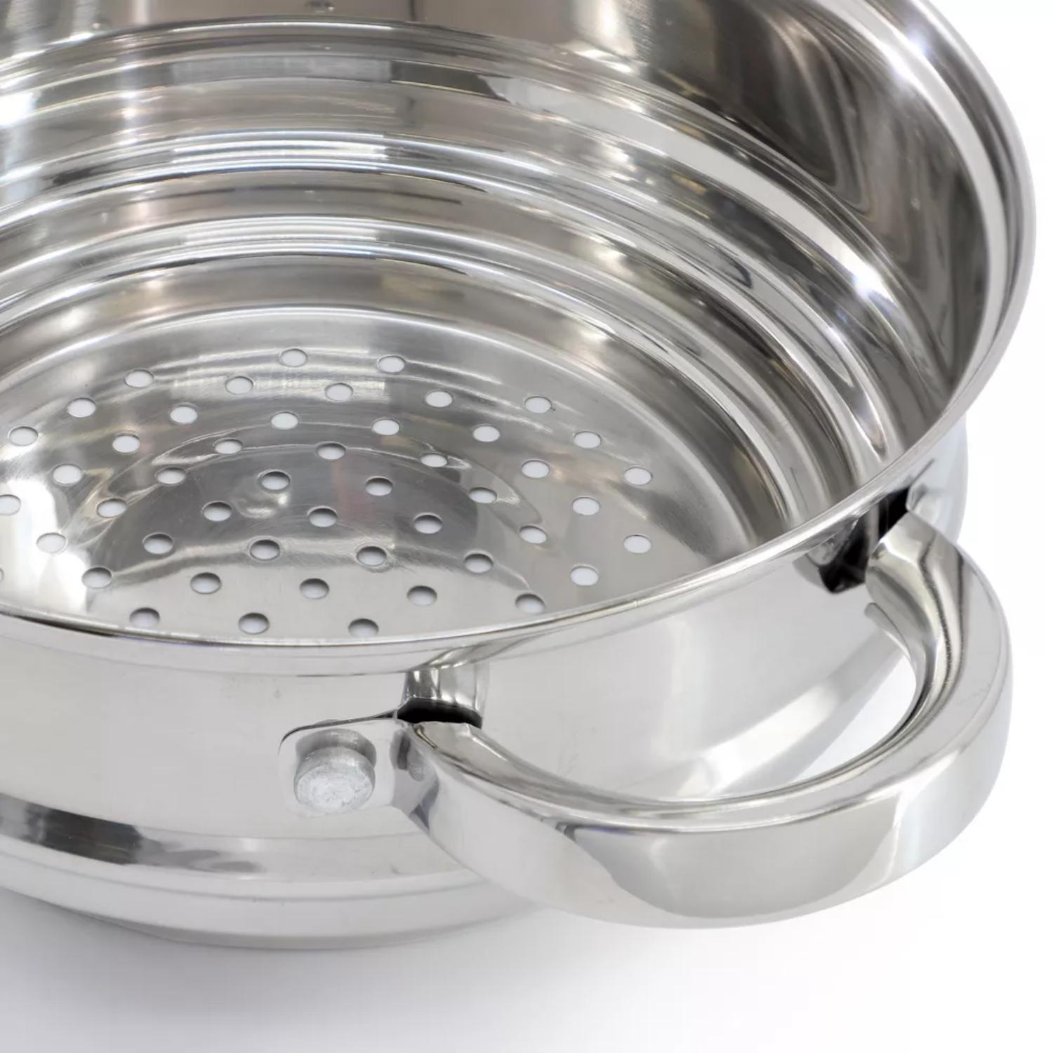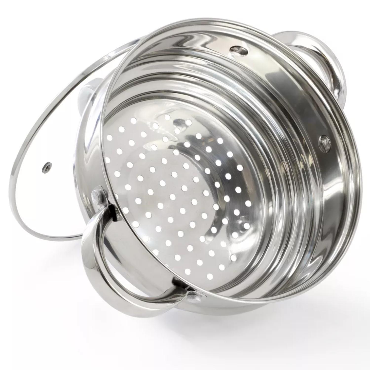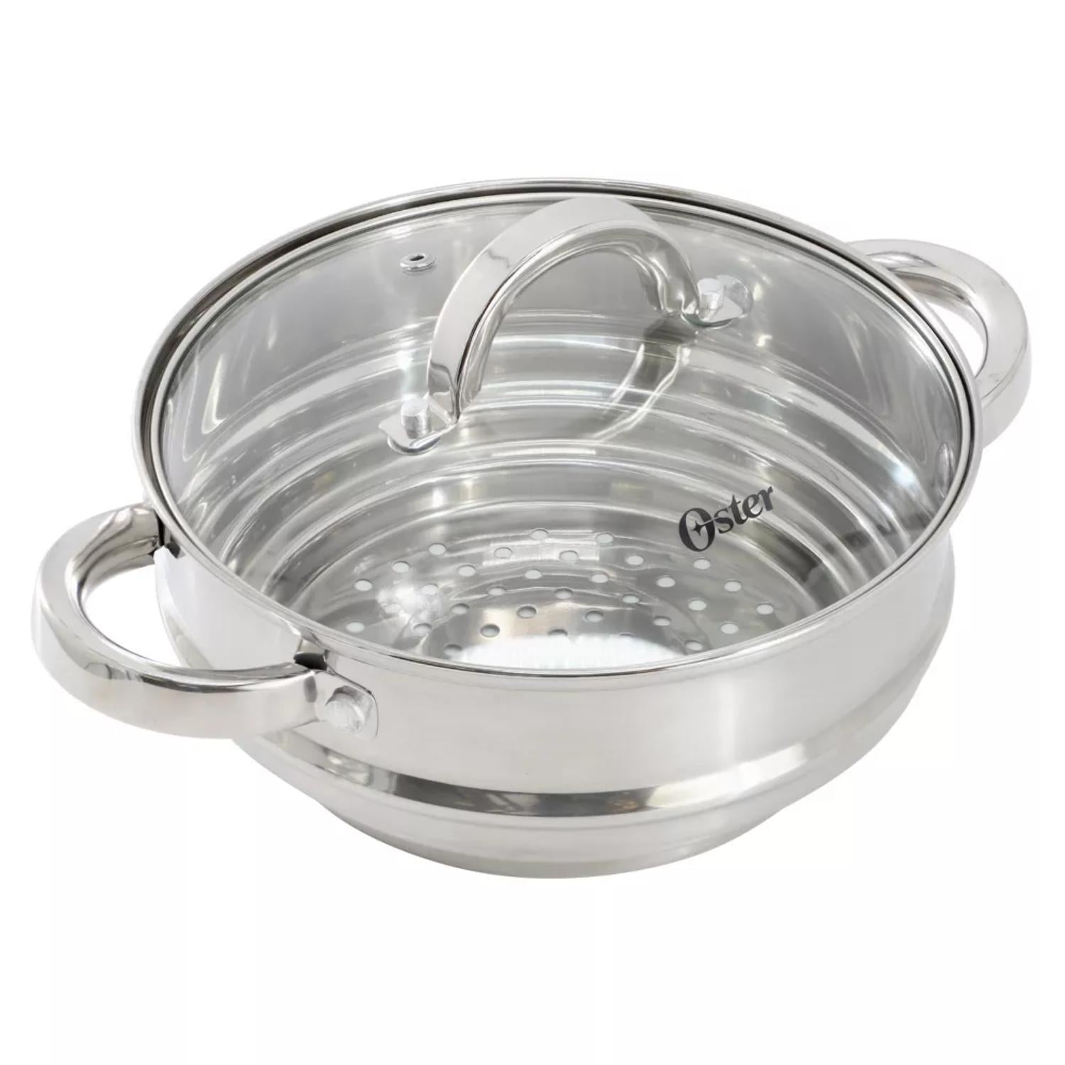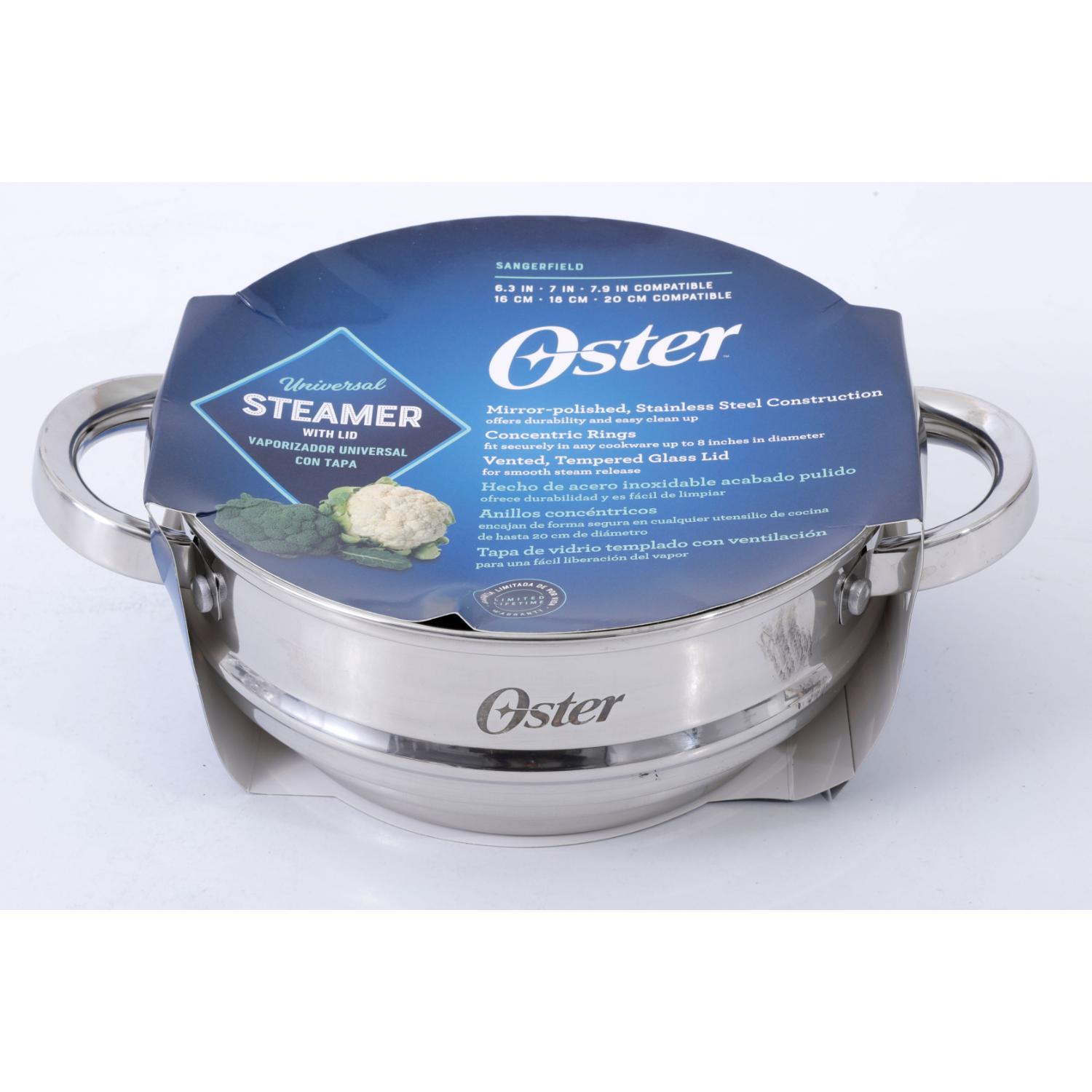 La vaporera universal de acero inoxidable Oster Sangerfield de 8 pulgadas con tapa es una herramienta esencial para quienes buscan preparar verduras o mariscos al vapor a la perfección. Fabricada en acero inoxidable de alta calidad con un impresionante acabado pulido a espejo, esta vaporera redonda no solo ofrece durabilidad, sino que también añade un toque de elegancia a su espacio de cocina.